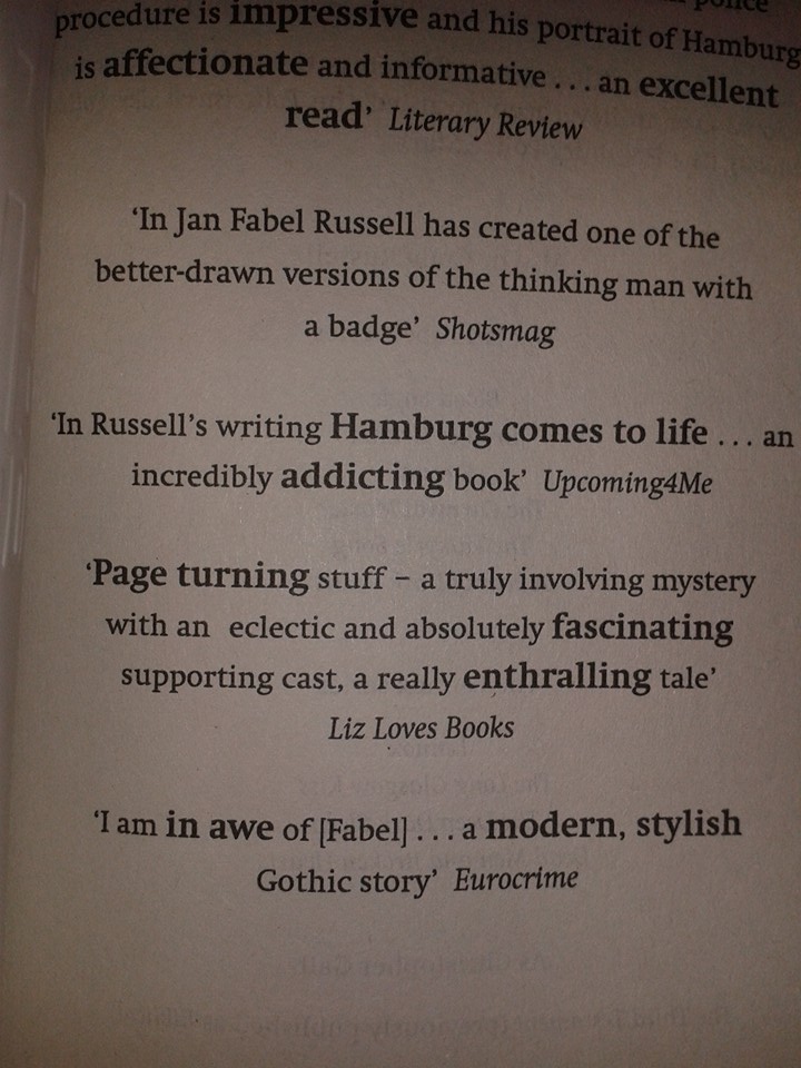 I'll soon be posting the Euro Crime review team's favourite discoveries of 2015, and their favourite reads of 2015 will appear in early 2016. In the meantime here are a couple of recent quotes from reviews that have made it onto the back of the (next) book.